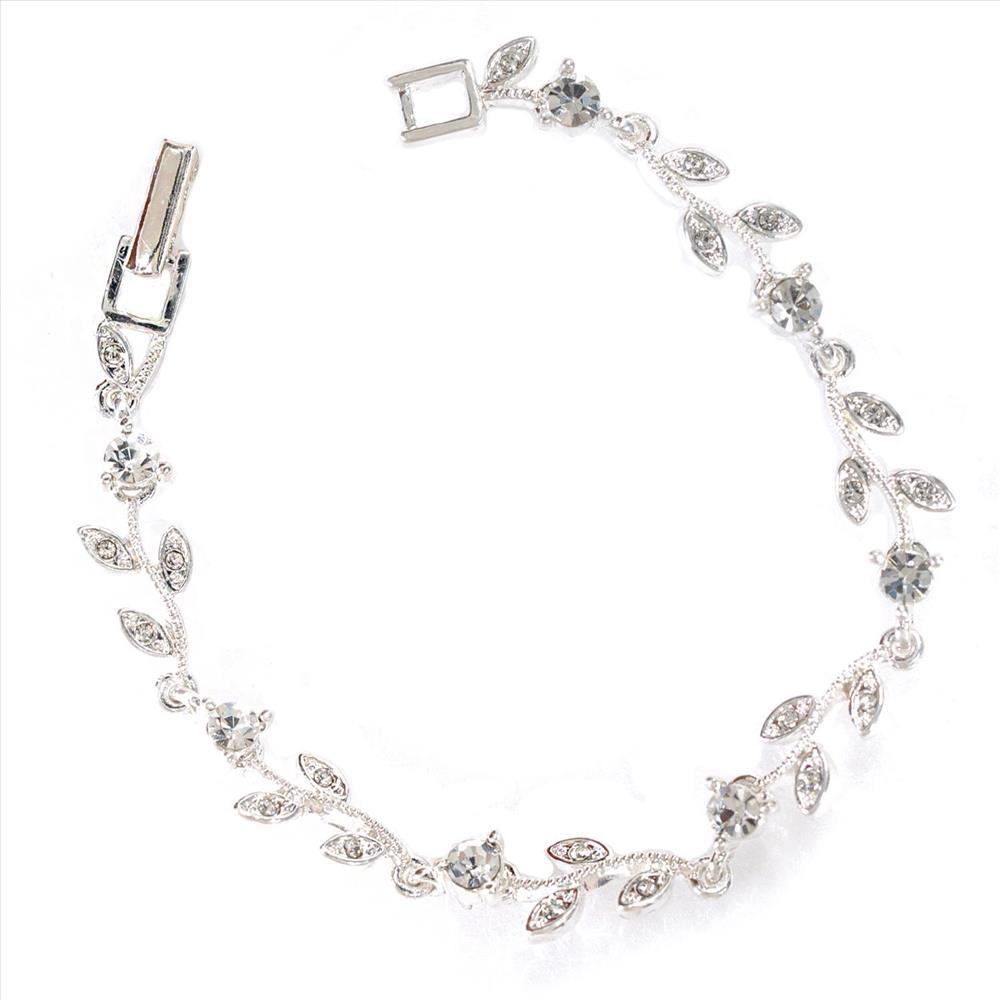 Silver Crystal Rhinestone Circle Round & Leaf Shape Combination Link Bracelet
