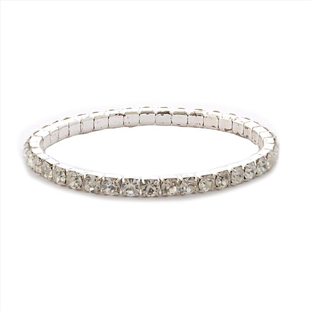 Silver Crystal 1 Row Stretch Bracelet