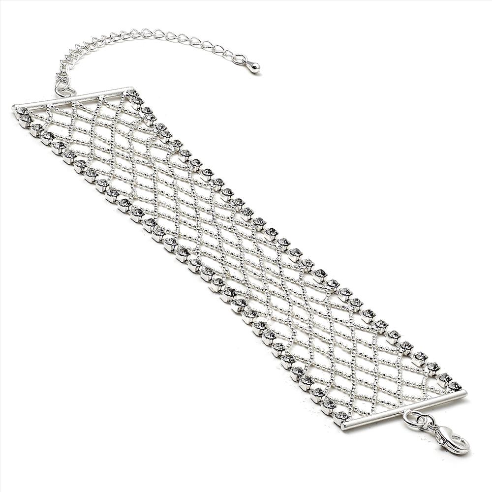 Featuring a gorgeous mesh design and adorned with radiant crystals and rhinestones, this bracelet is sure to turn heads and catch the light with every movement. The sleek silver finish adds a touch of elegance, making it the ideal accessory for any fashion-forward individual.