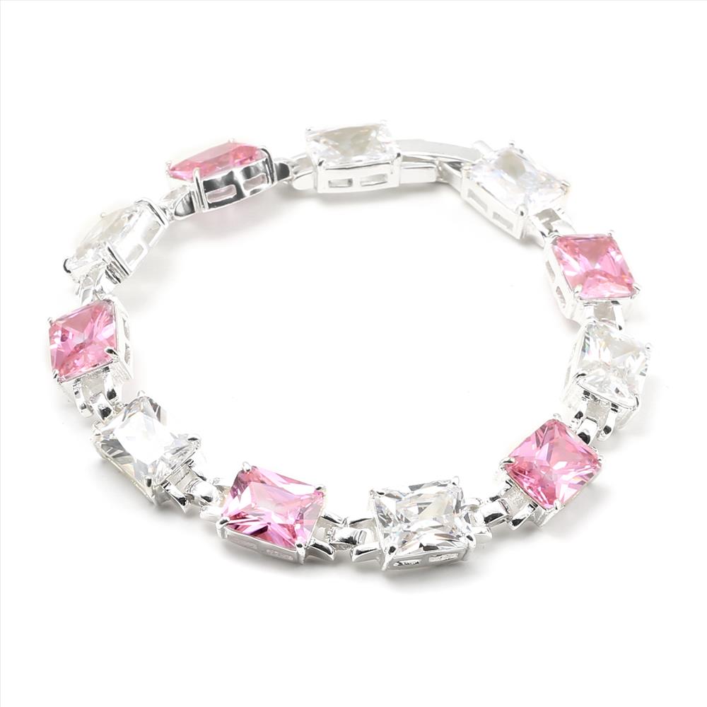 This gorgeous bracelet is made of silver light rose cubic zirconia. This bracelet is rectangle shaped link bracelet. It measures approximately 7.5″ long and 26.3g in weight . It is very easy to wear. It is ideal for wedding, birthday, prom or pageant. You can give this bracelet as a gift for any special occasions.