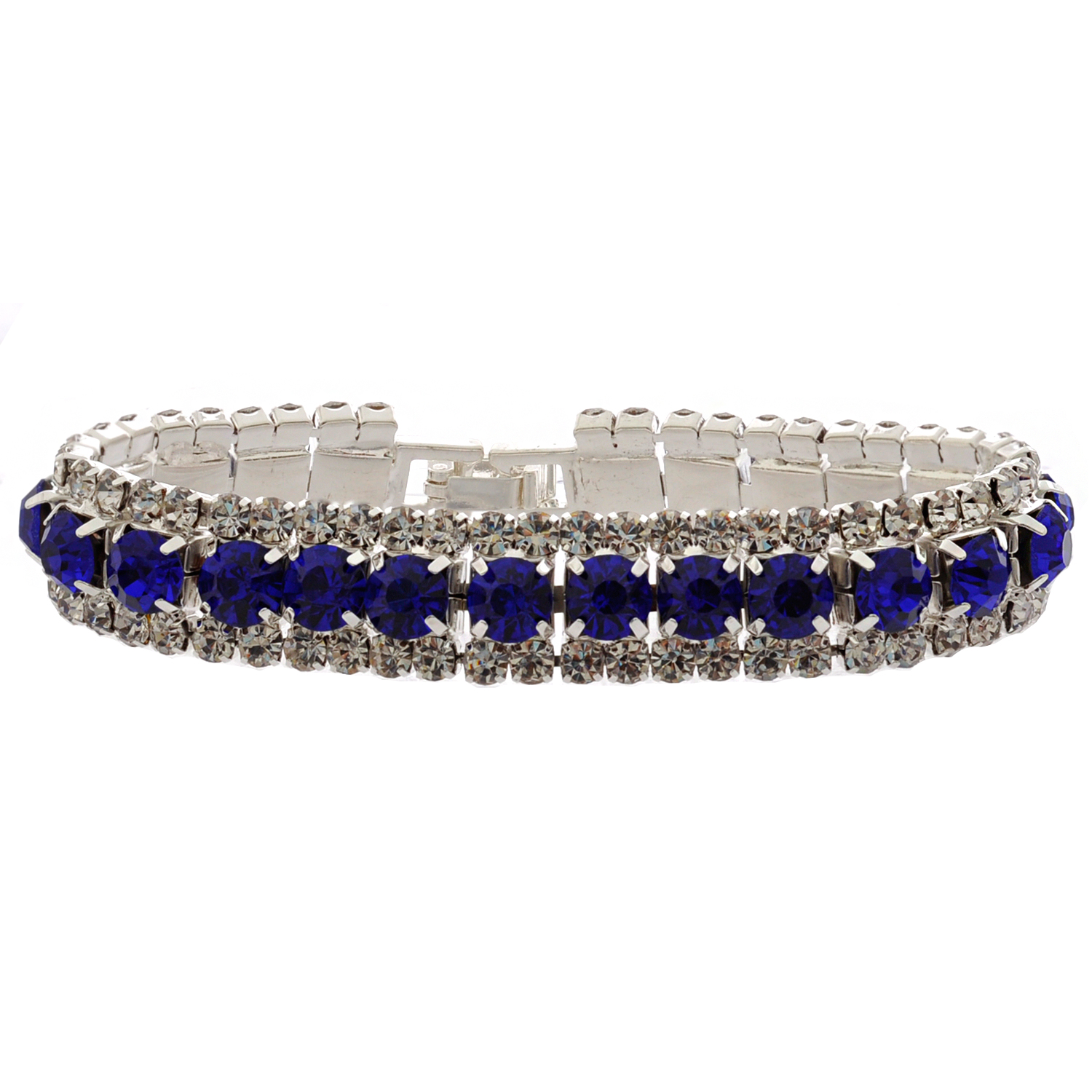 Wedding Bracelet Silver Plated Sapphire Rhinestone 3 Line Link Bracelet