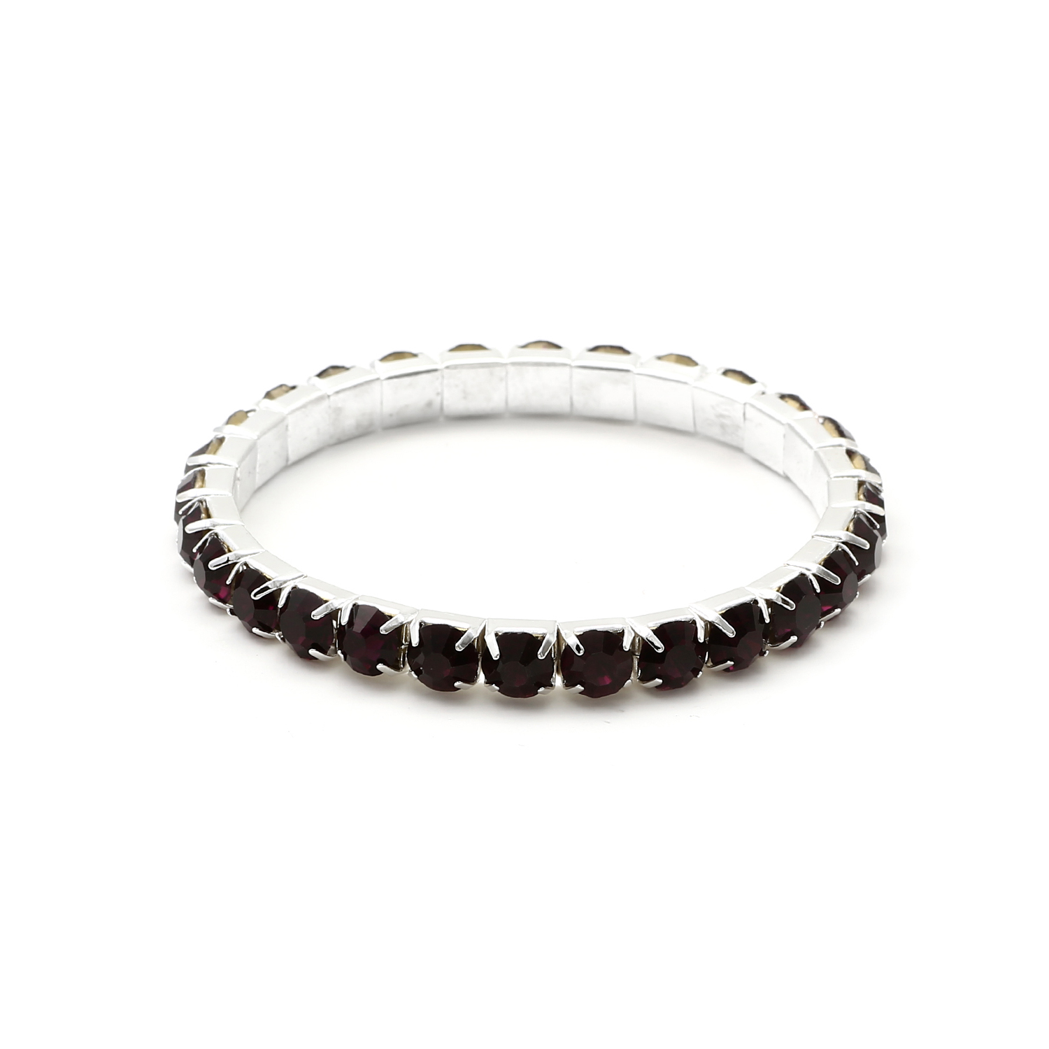 This 1- row stretch bracelet is beautifully designed with silver amethyst rhinestone. It measures 7 1/2″ long. Perfect for weddings, bridesmaids, proms, formal dances, pageants, and any other special occasion!