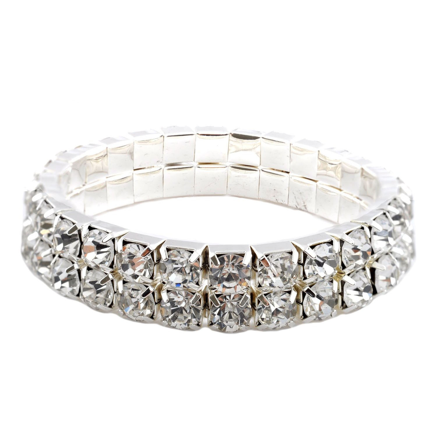 This bracelet is stunning! It is encrusted with sparkling rhinestones along a silver plate. It is very artistic design. It measures 6.5″ long with a 2″ long extender and 7.6g in weight. It is perfect for wedding, prom, dance party or any occasion. It coordinates with any color or style dress or formal ensemble.