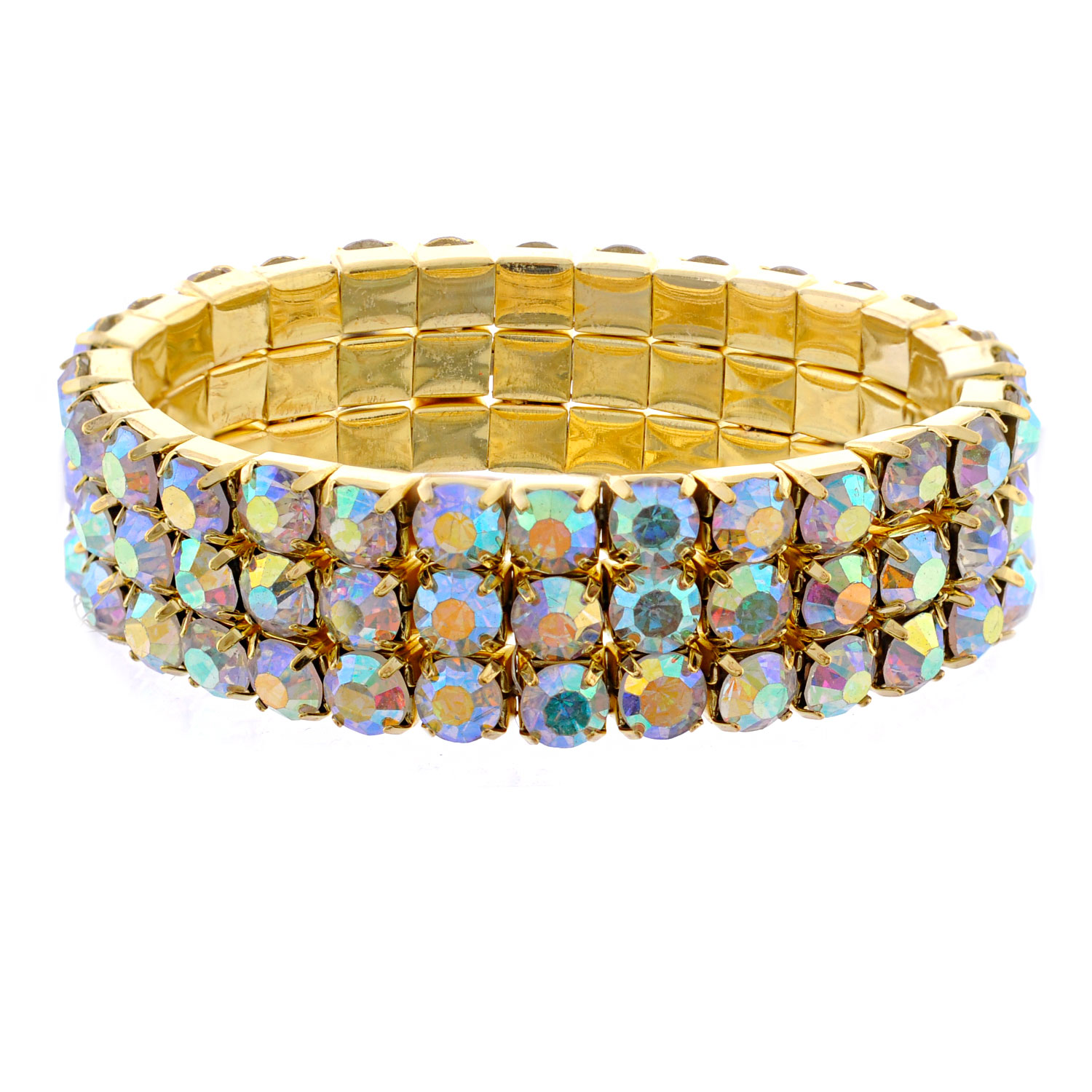 Fashion Bracelet Gold Plating Aurora Borealis Stretch Bracelet