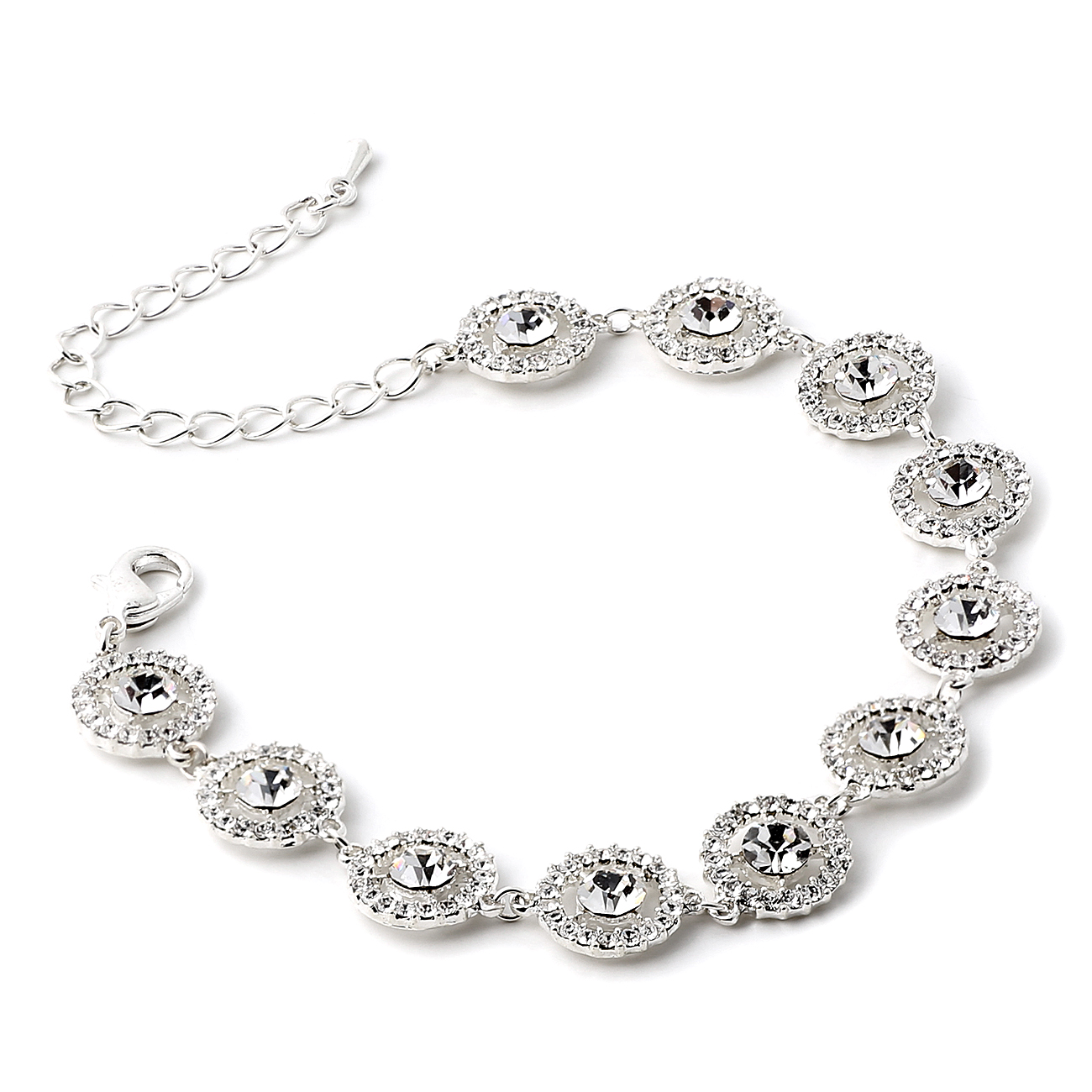 Silver Crystal Round Shape Rhinestone Circle Wrapped Rhinestone Stud Link Bracelet