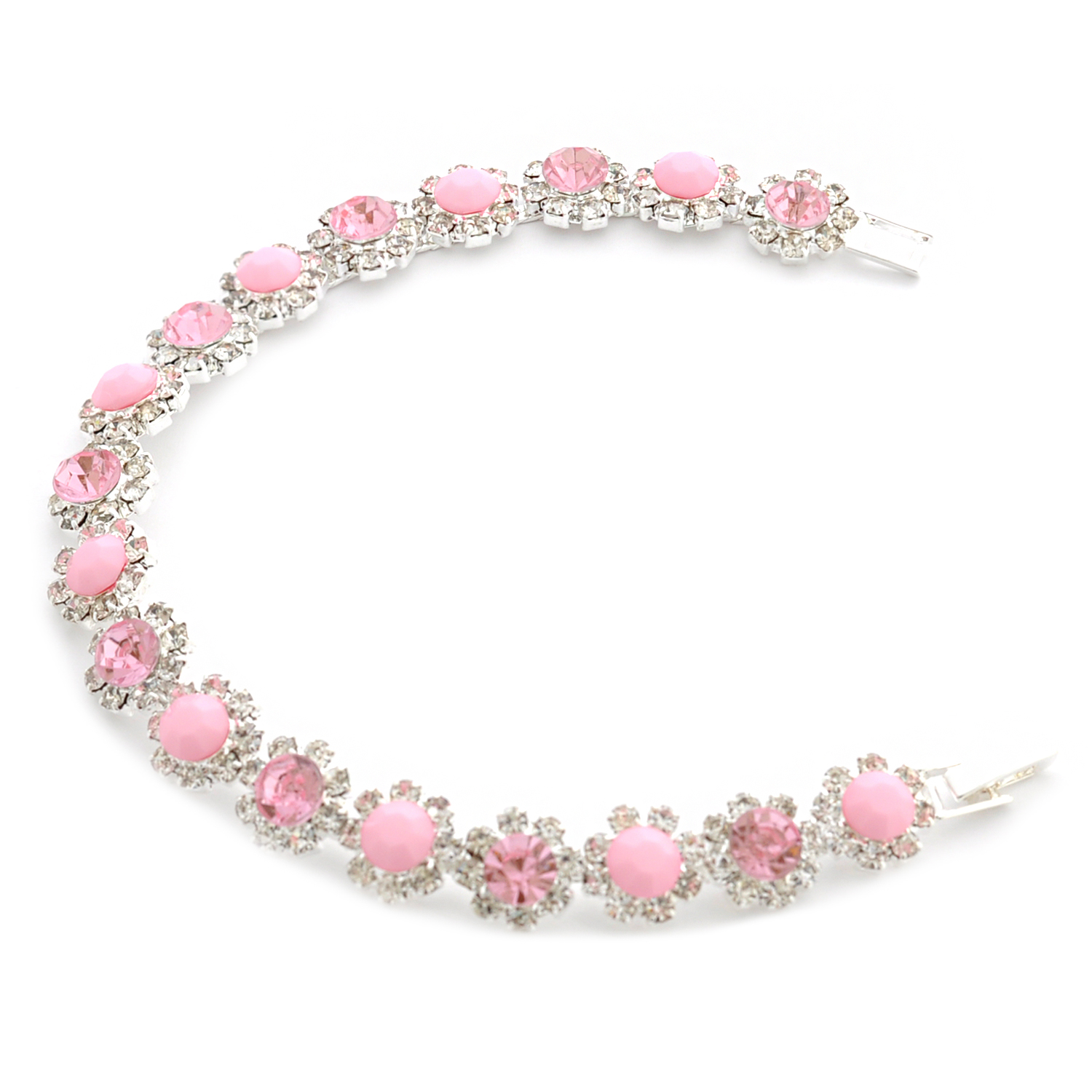 Wedding Bracelet Silver Crystal Light Pink Opaque Bracelet