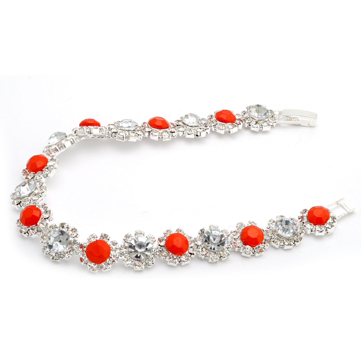 Wedding Bracelet Silver Plated Light Siam Opaque White Stone Inserts Bracelet