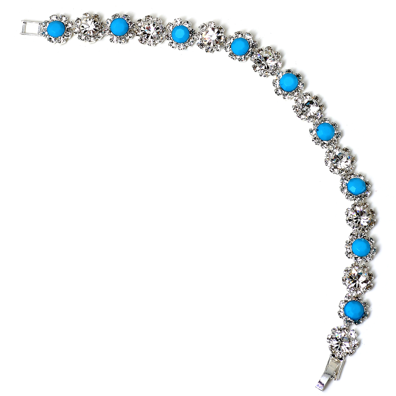 Silver Crystal Rhinestone in Circle Formation with Crystal and Opaque Turquoise Stone Inserts Bracelet