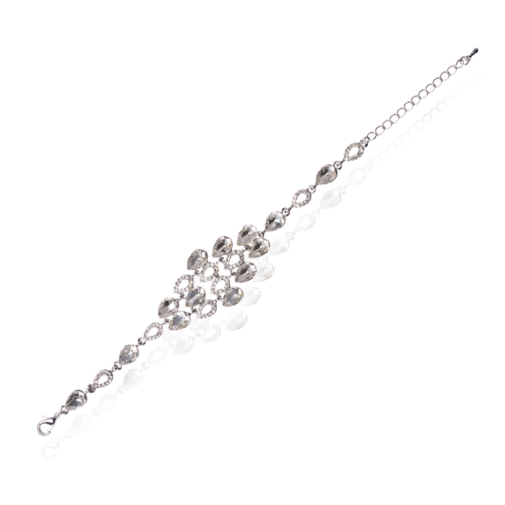Fashion Jewelry Bracelet Silver Crystal Oval Stone Bead Link Bracelet