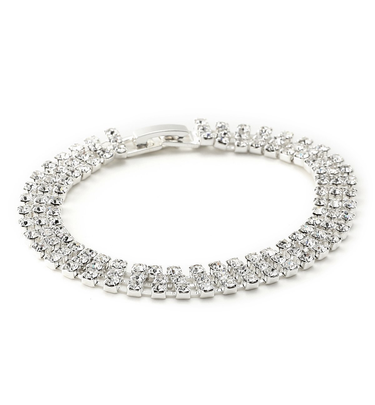 This gorgeous rhinestone crystal bracelet is made of three rows of clear crystals. This bracelet is very light weight, so easy to wear. It is Ideal for Wedding, Birthday, Prom or Pageant. You can give this bracelet as a gift for any special occasions.