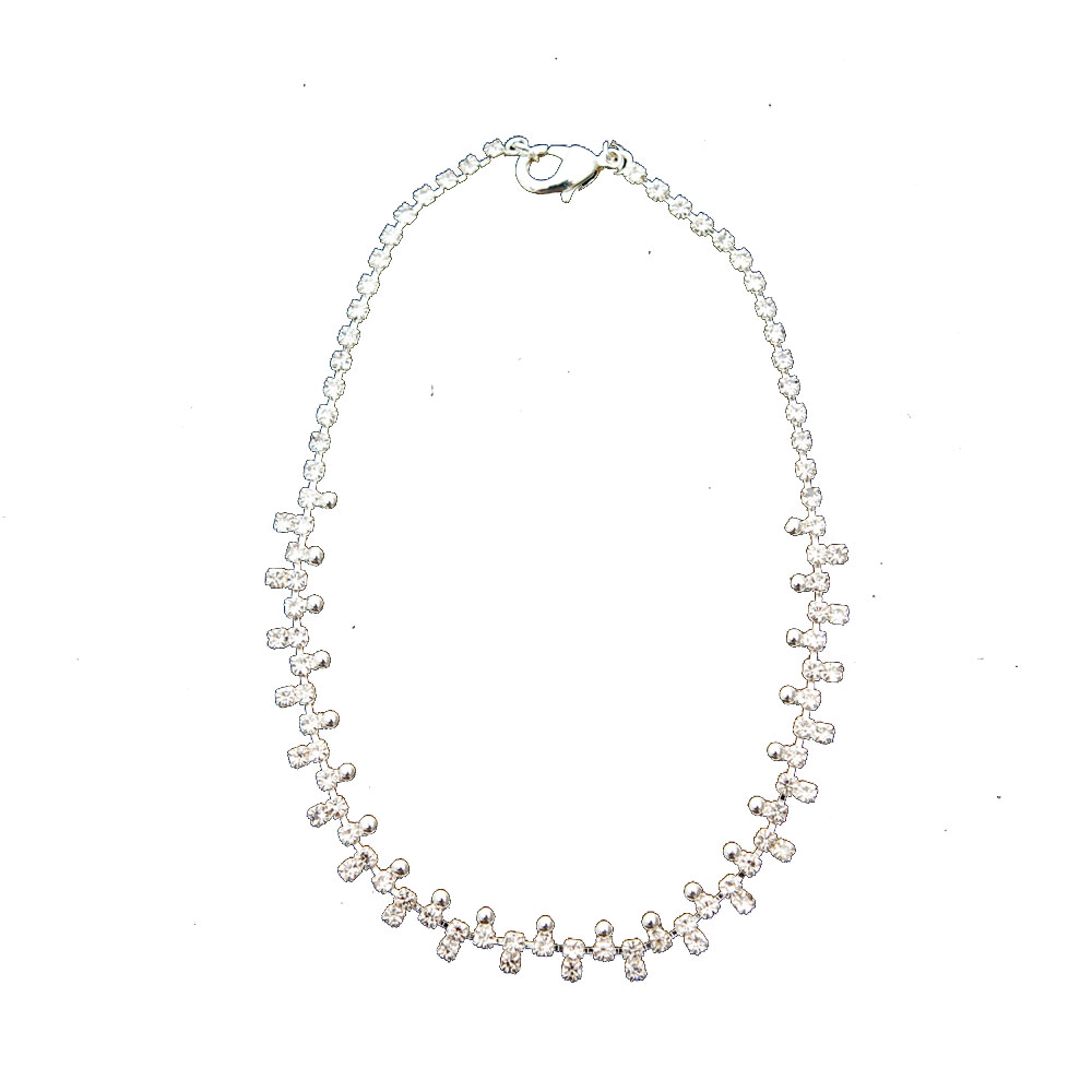Silver Crystal Rhinestone Square and Ball Anklet