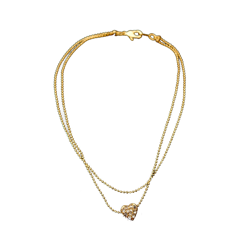 Gold 2 Row Strand with Gold and Crystal Rhinestone Heart Shape Anklet
