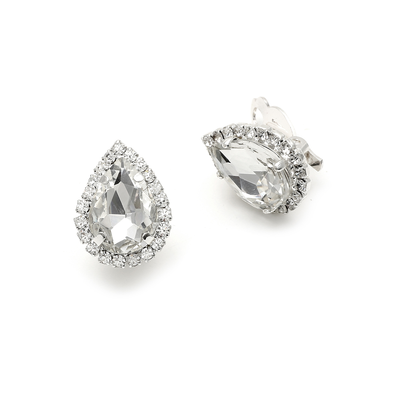 Silver Crystal Rhinestone Wrap with Crystal Teardrop Center Clip Earrings