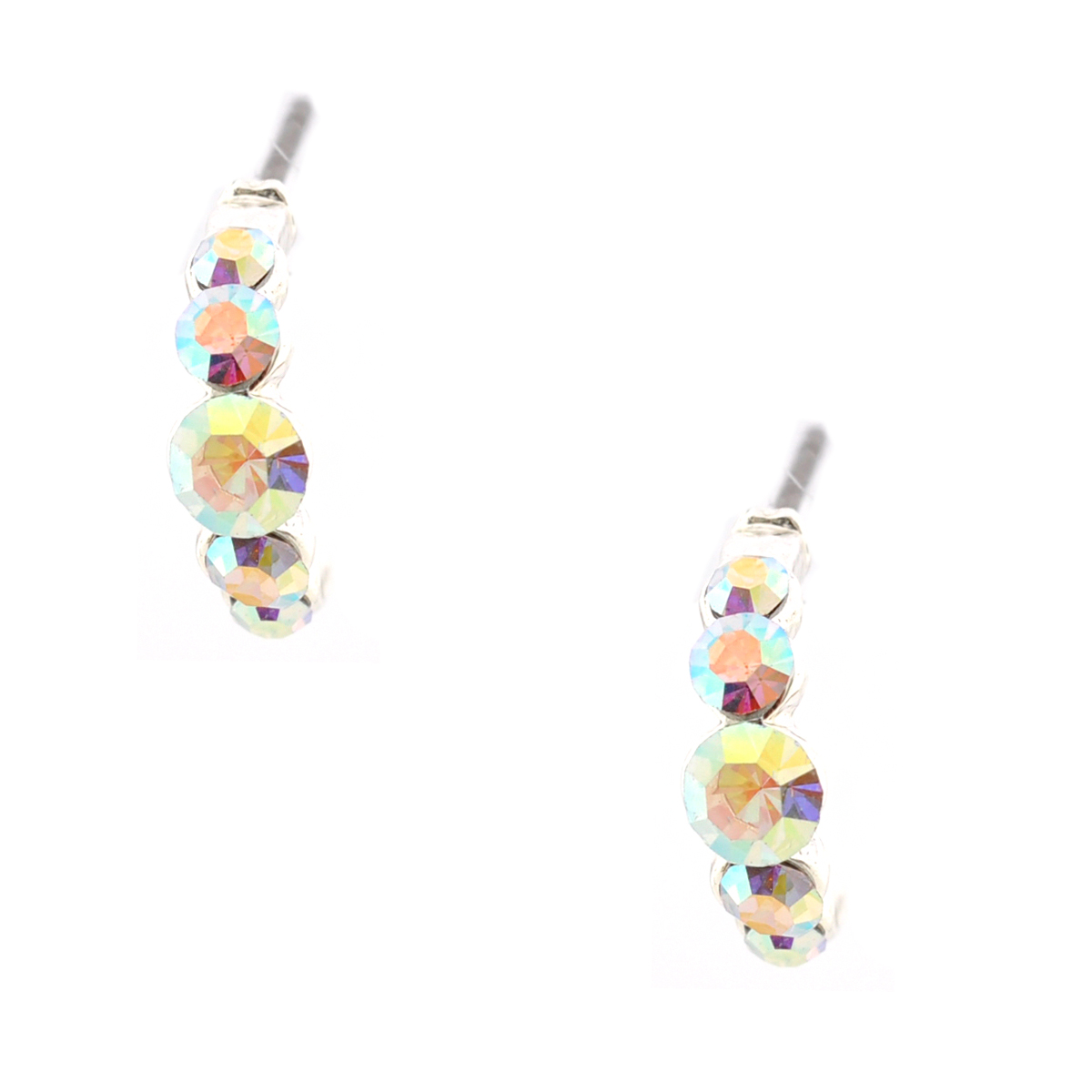 Wedding Earrings Silver Aurora Borealis Semi Hoop Stud Earrings