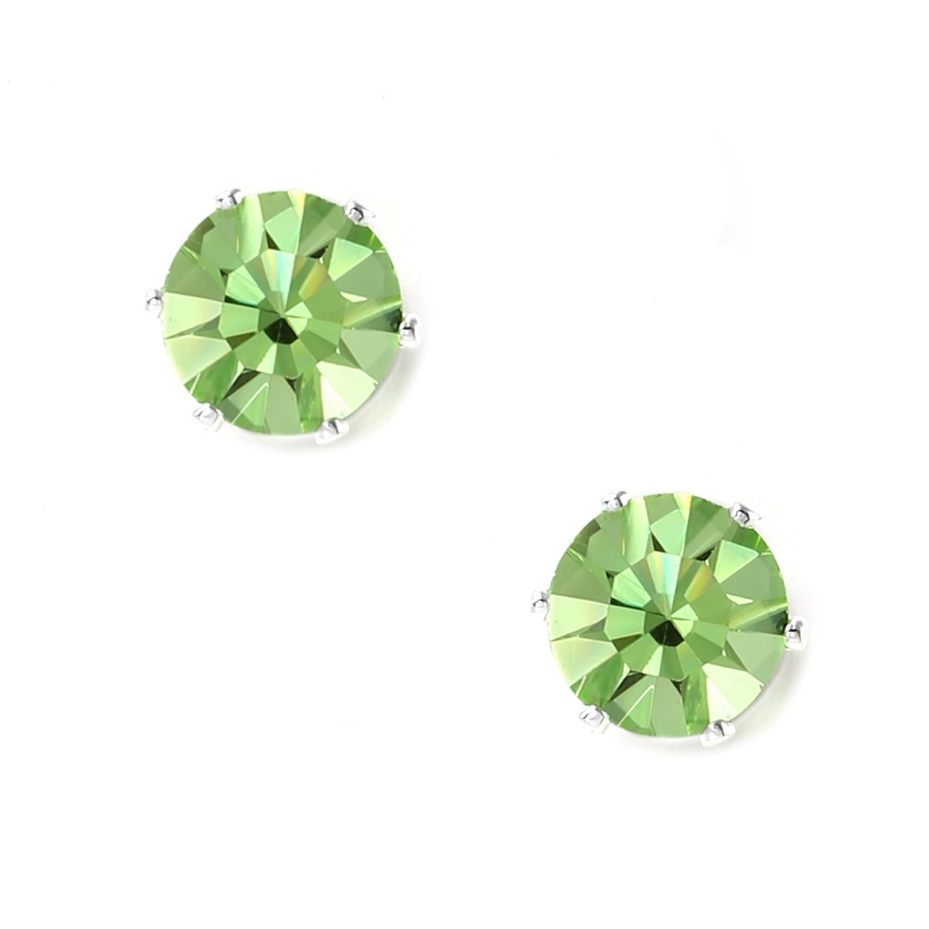 Silver Peridot 9mm Cubic Zirconia Rondelle Circle Round Stud Earrings