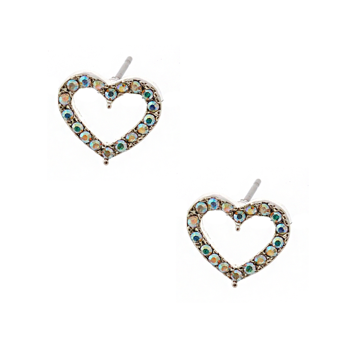 Bridal Earrings Silver Aurora Borealis Heart Shpae Stud Earrings