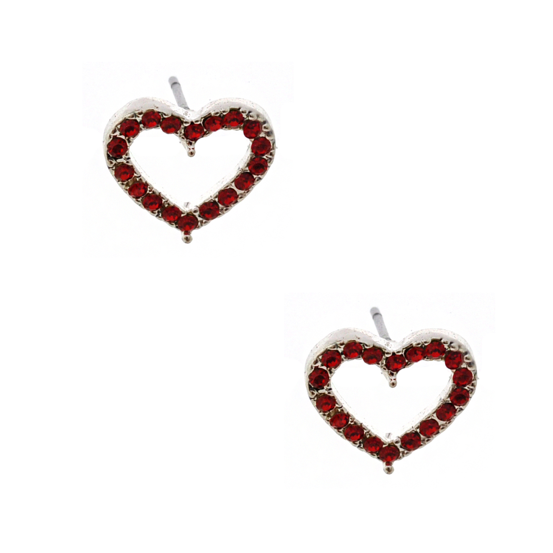 Bridal Earrings Silver Light Siam Heart Shape Stud Earrings