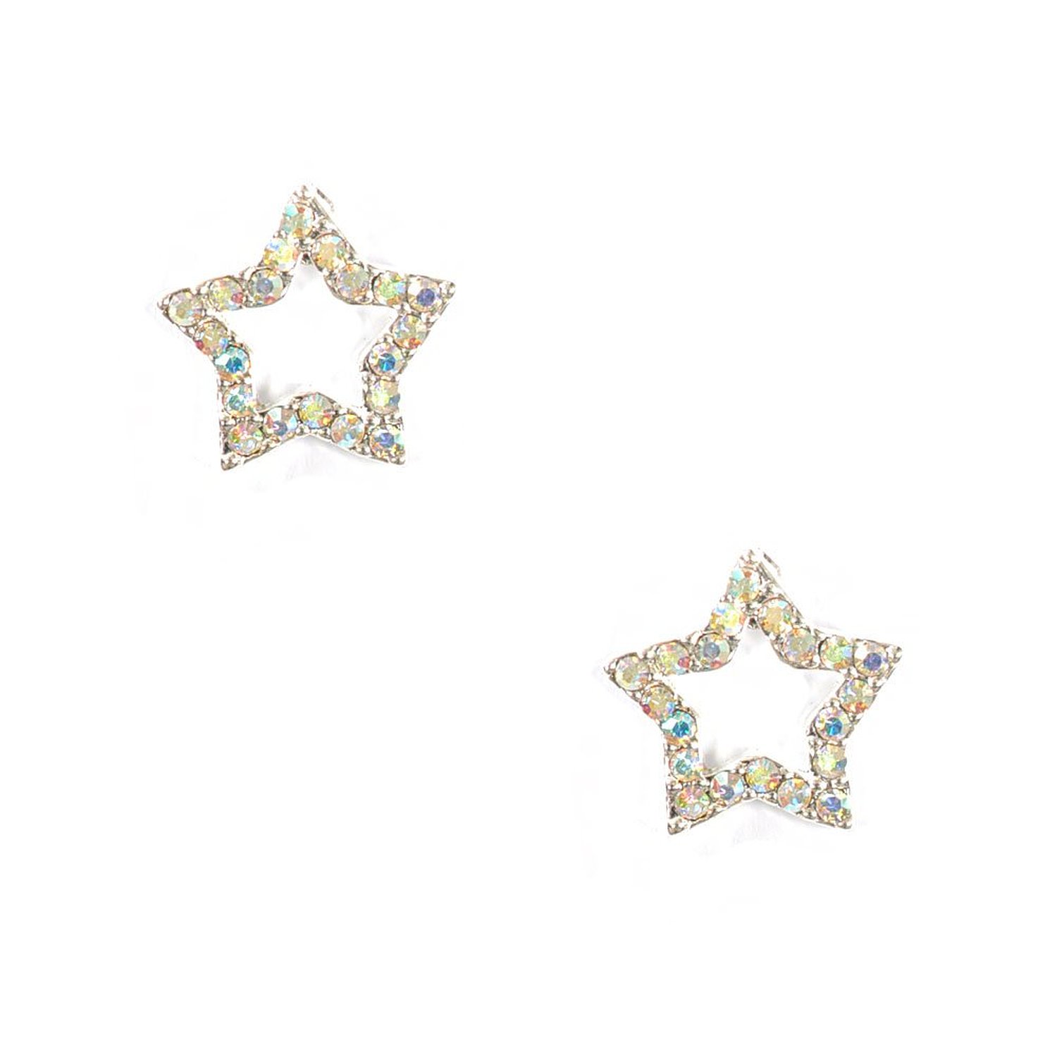 Silver Aurora Borealis Rhinestone in Star Shape Earrings