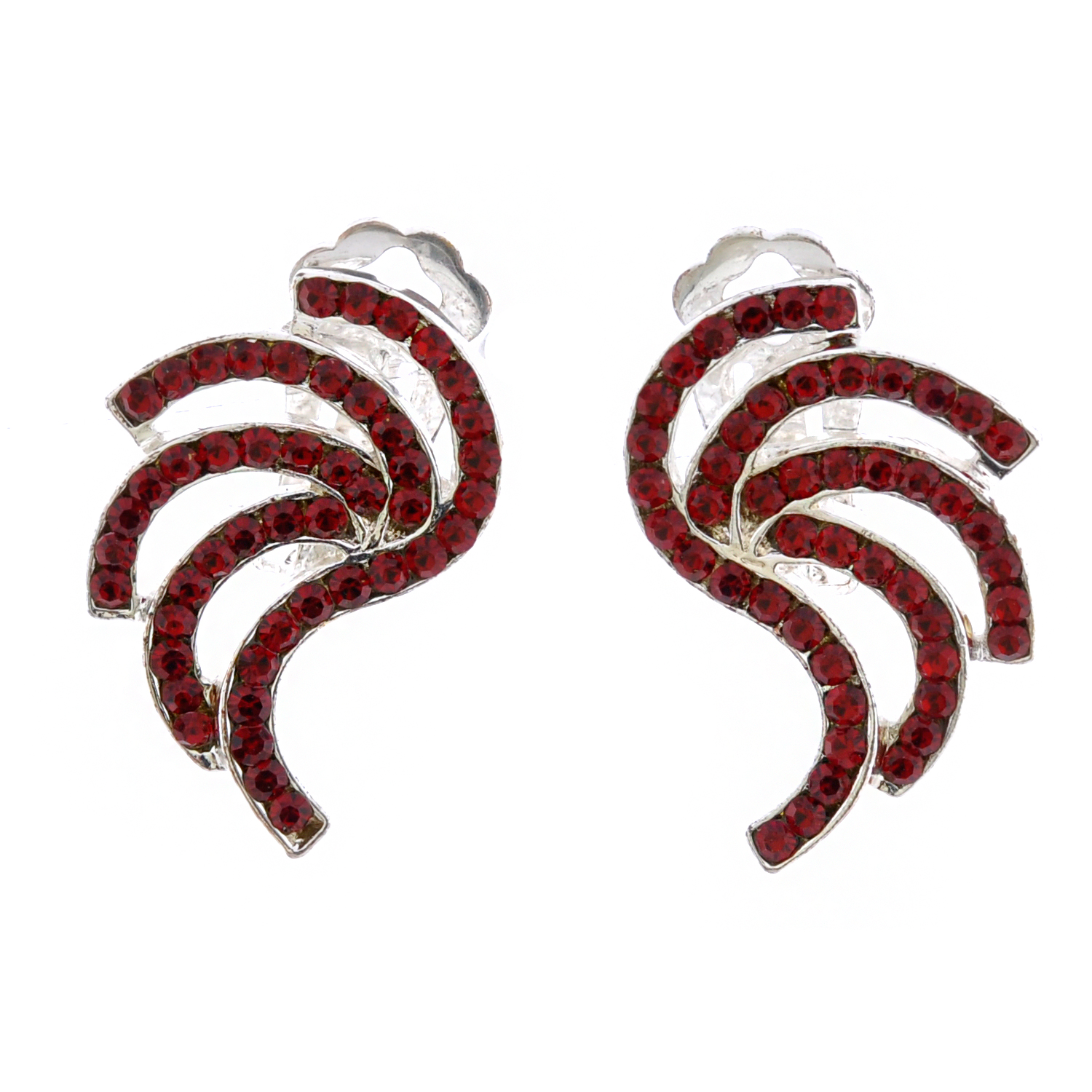 Fashion Earrings Silver Plating Siam Rhinestone Curve Clip On Earrings