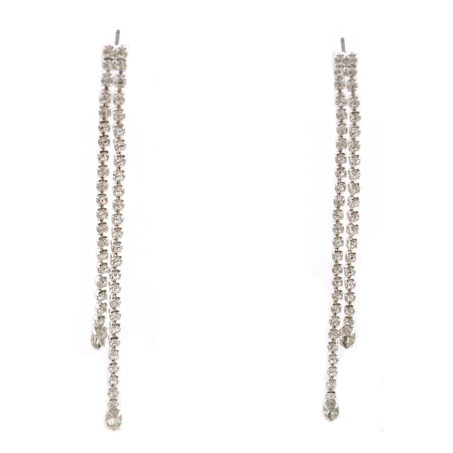 Wedding Earrings Silver Plating Rhinestone 2 Line Dangle Earrings