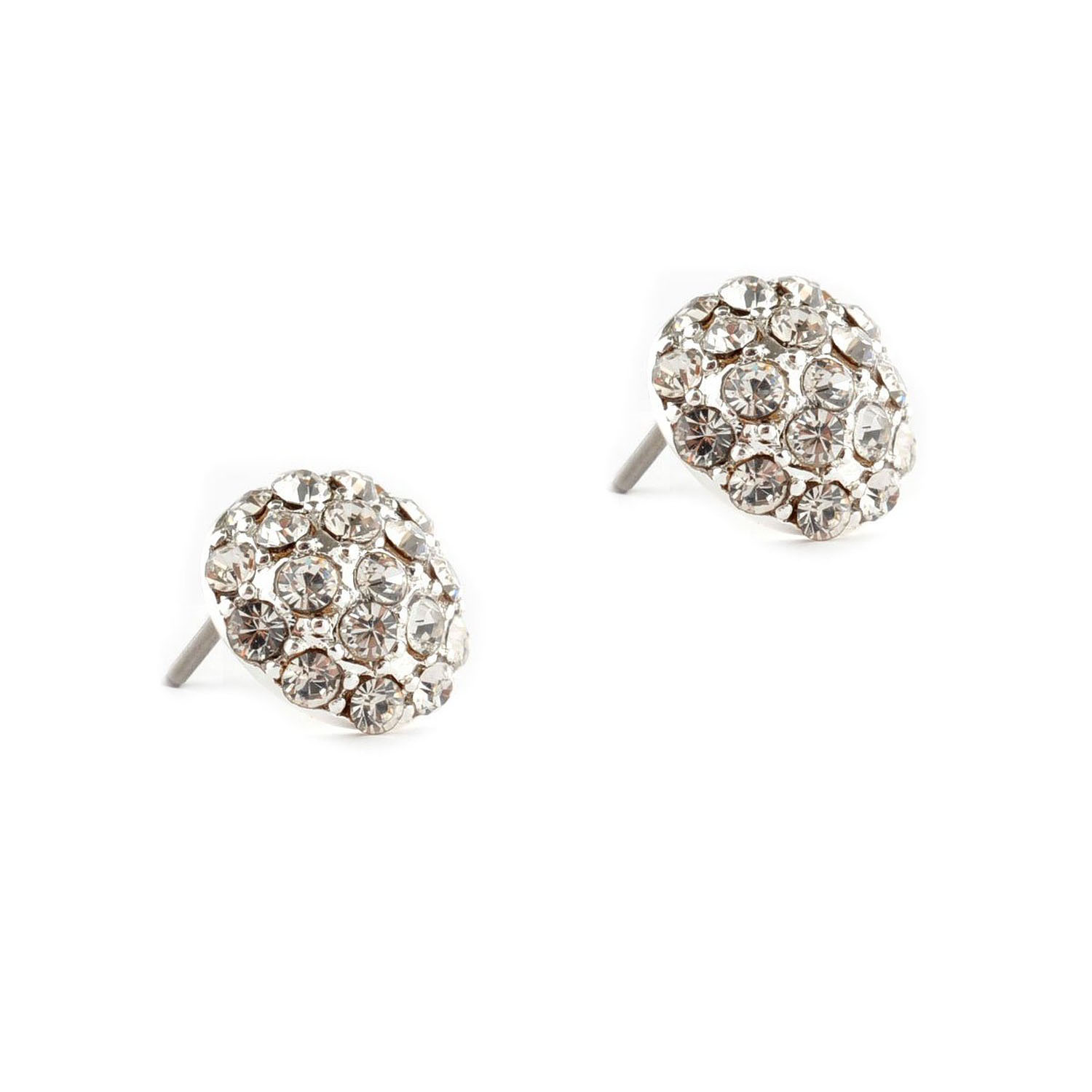 10mm Sterling Silver Plated Crystal Button Stud Earrings