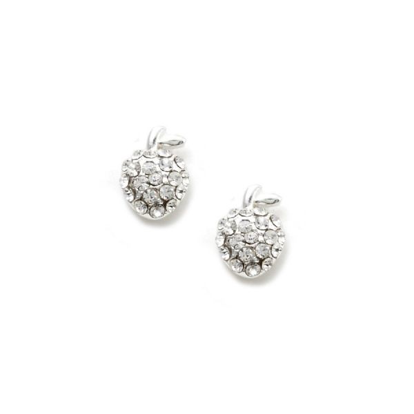 Silver Crystal Rhinestone Pave Apple Shape Stem Leaf Stud Earrings