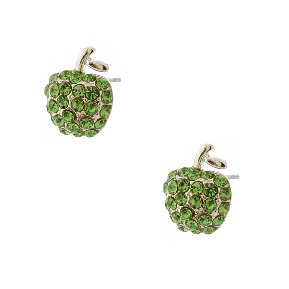 Wedding Earrings Silver Peridot Pave Apple Shape Stud Earrings