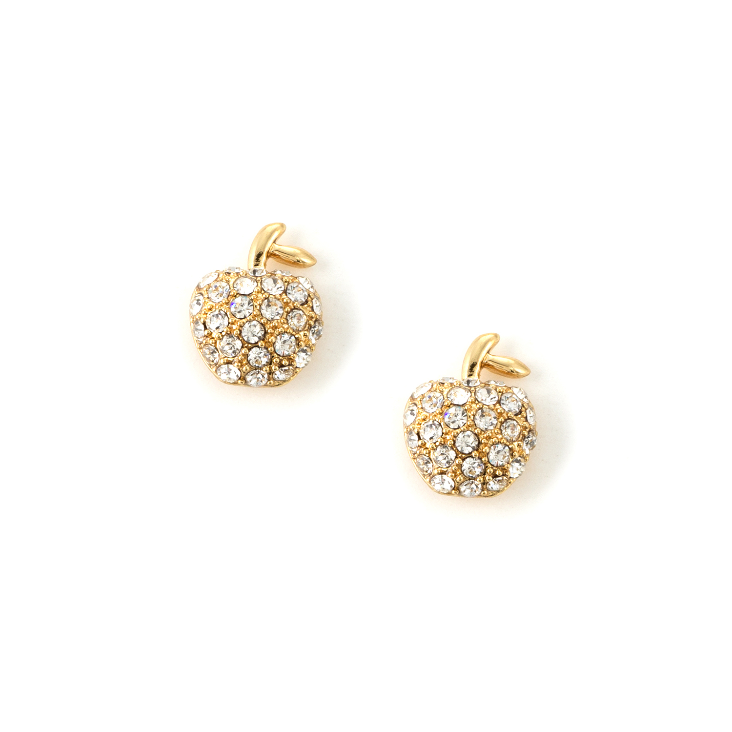 Gold Crystal Rhinestone Pave Apple Shape Stud Earrings
