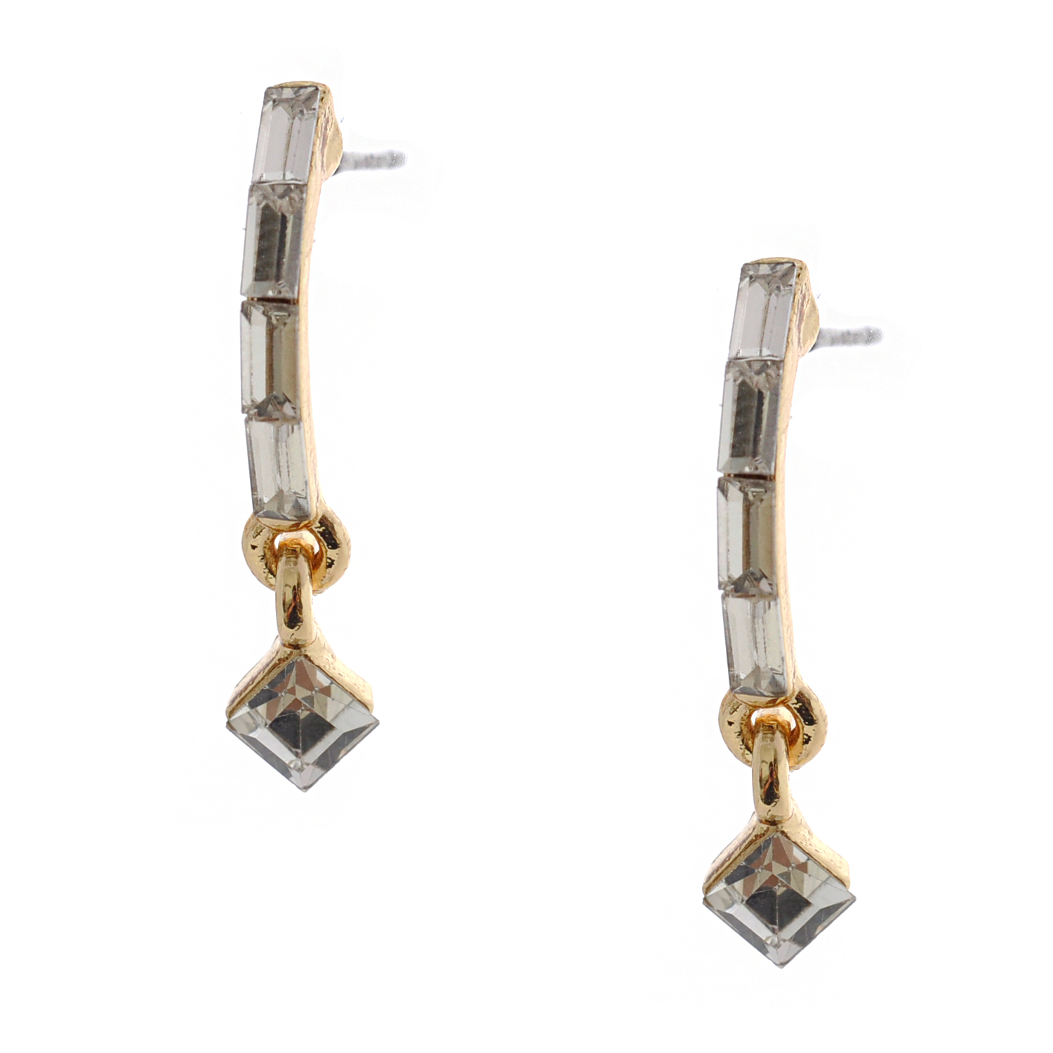 Wedding Earrings Gold Crystal Baguette Bridal Hoop Earrings