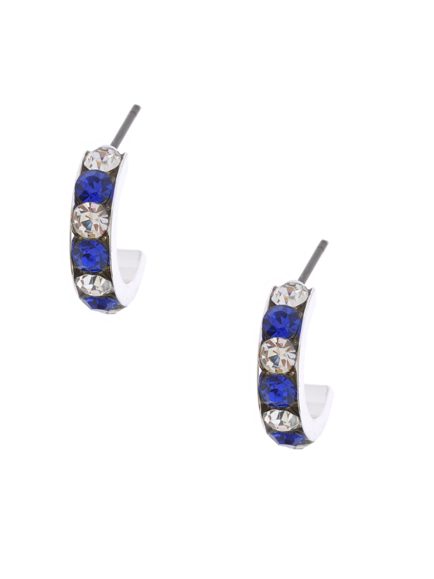 Fashion Jewelry Silver Plating Sapphire Round Stone Semi Hoop Earrings