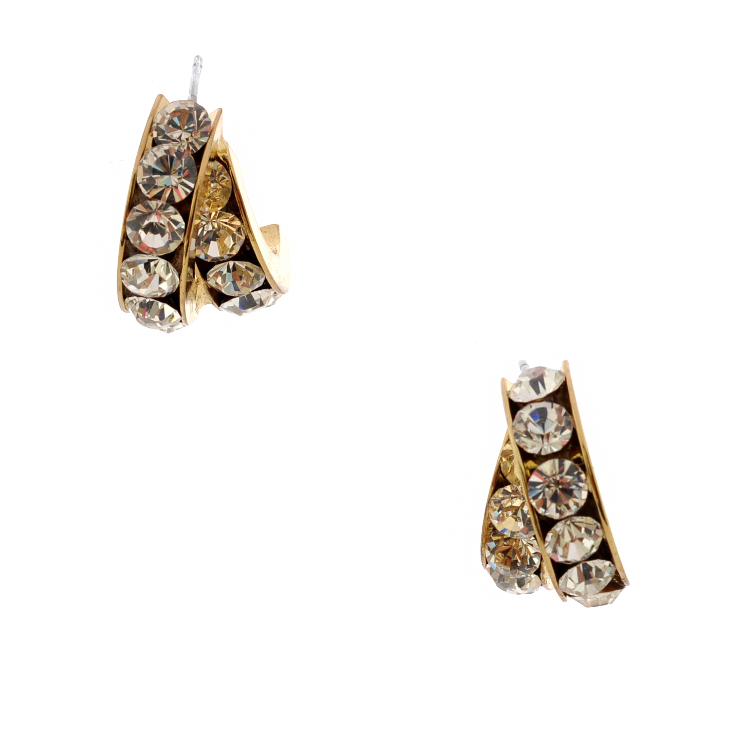 Bridal Earrings Gold Crystal 2 Semi Hoop Earring