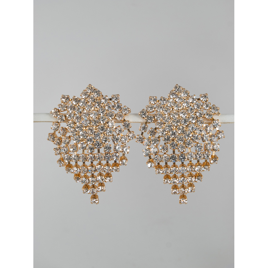 Gold Crystal Wide Chandelier Clip Earring