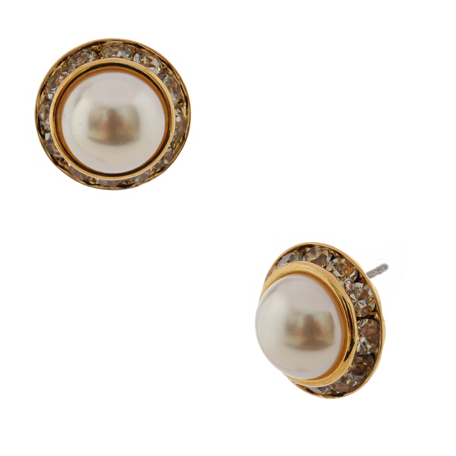 Wedding Earrings Gold Crystal Rondelle Circle Round Dome Pearl Stud Earrings