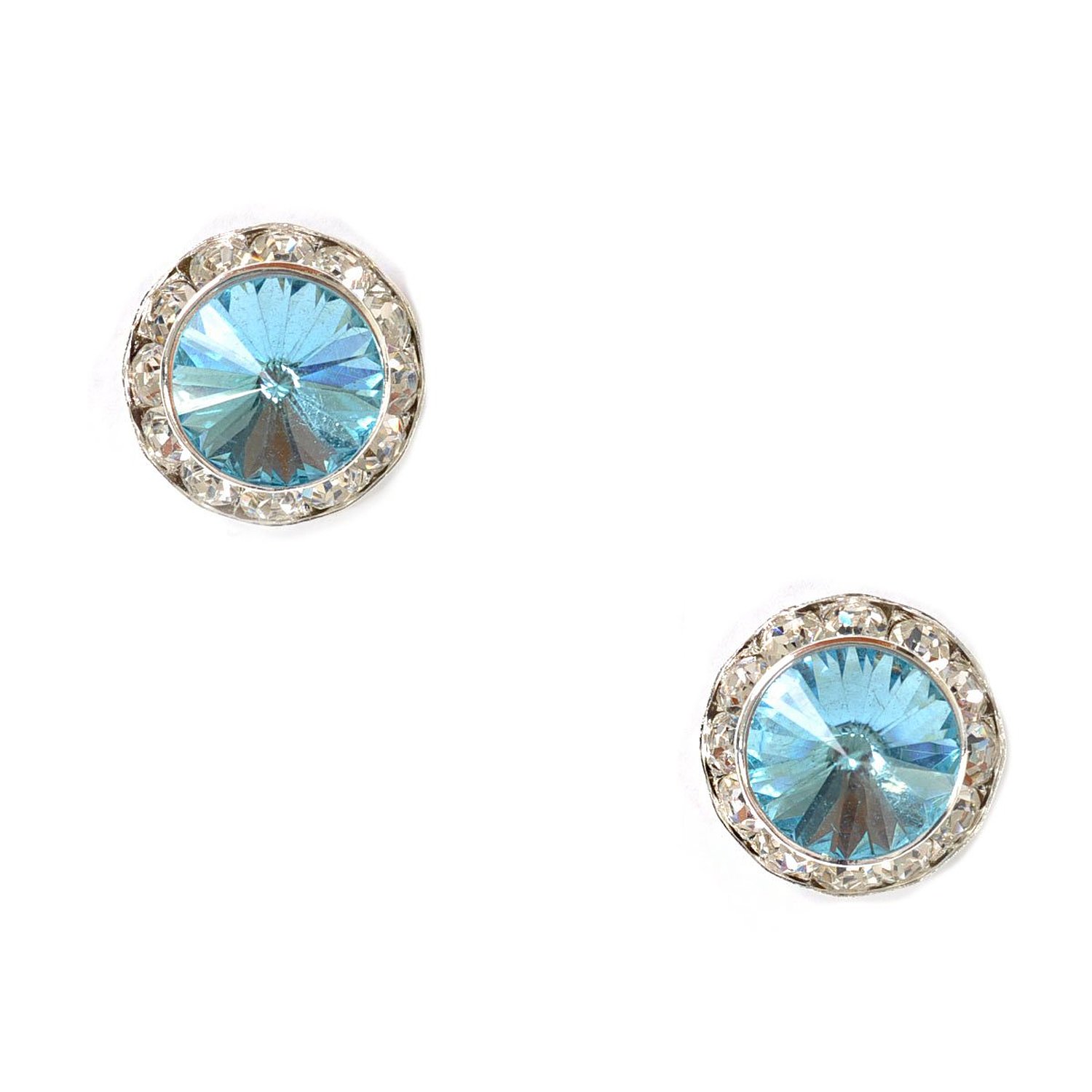 Silver Aqua Rhinestone 15mm Rondelle Circle Round Shape Stud Earrings