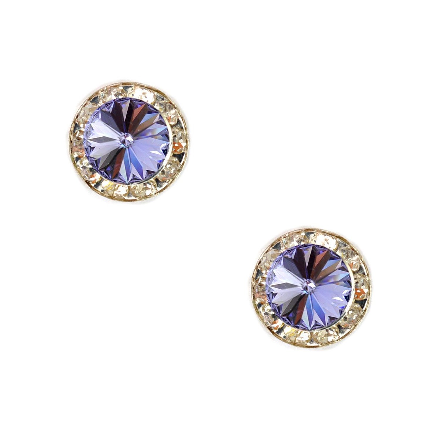 Silver Tanzanite Rhinestone 15mm Rondelle Circle Round Shape Stud Earrings