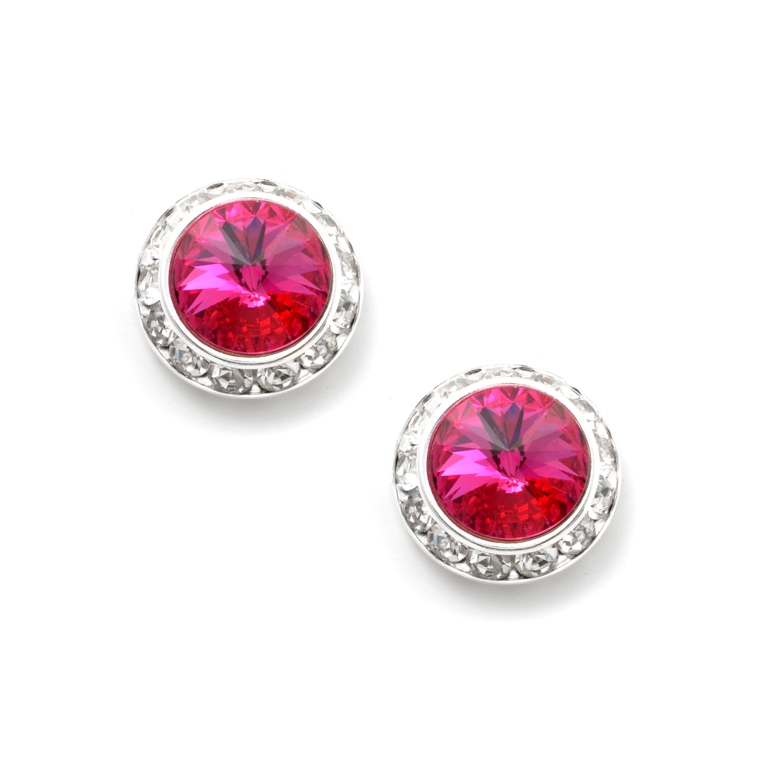 Bridal Earrings Silver Fuchsia?21mm Rondelle Circle Stud Earrings