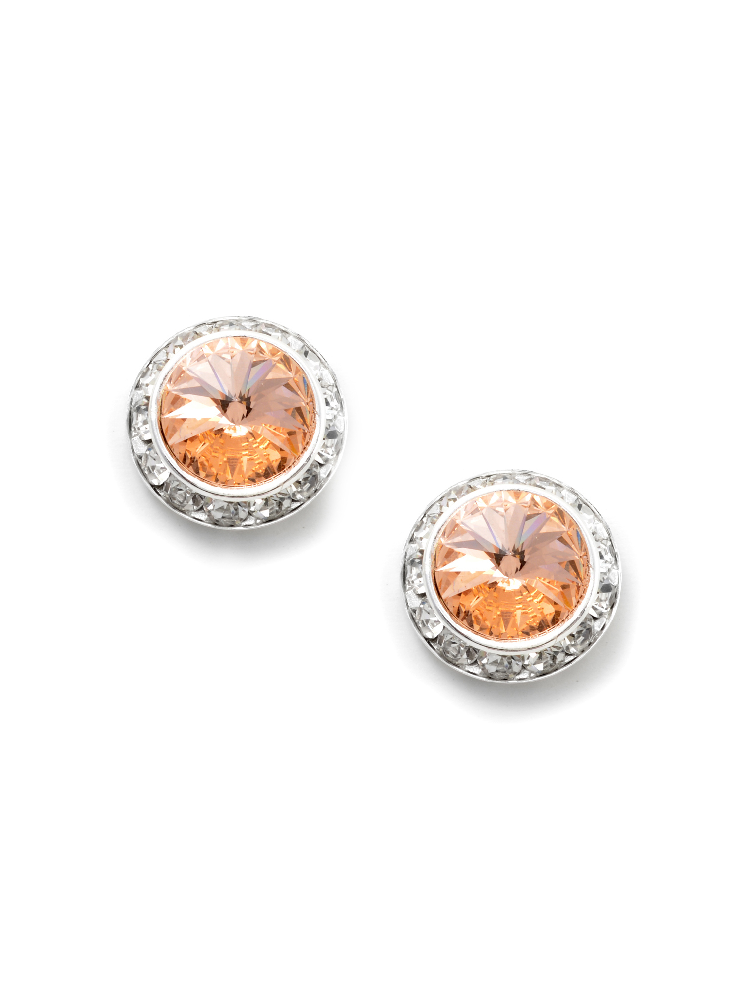 Silver Light Peach Rhinestone 21mm Rondelle Circle Round Shape Stud Earrings