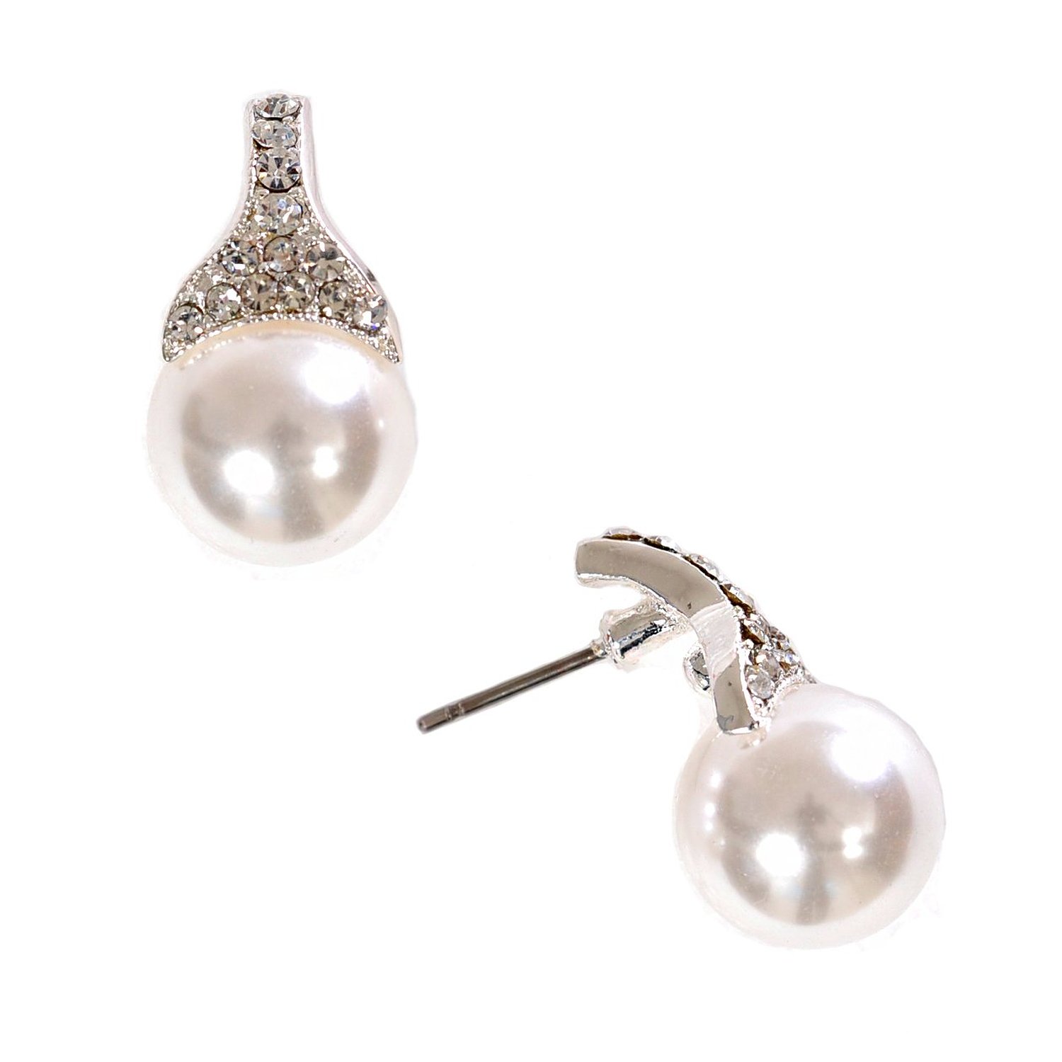 Silver Crystal Pearl Circle Stud Earrings