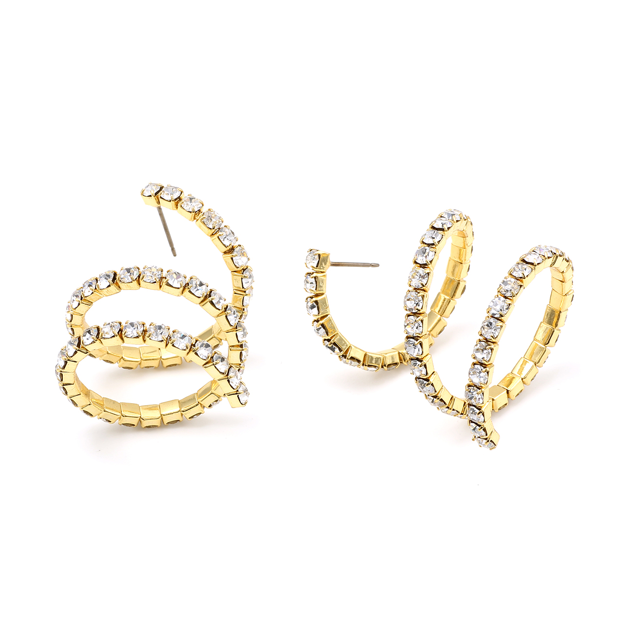 Gold Crystal Rhinestone Spiral Ribbon Ring Shape Dangle Earrings