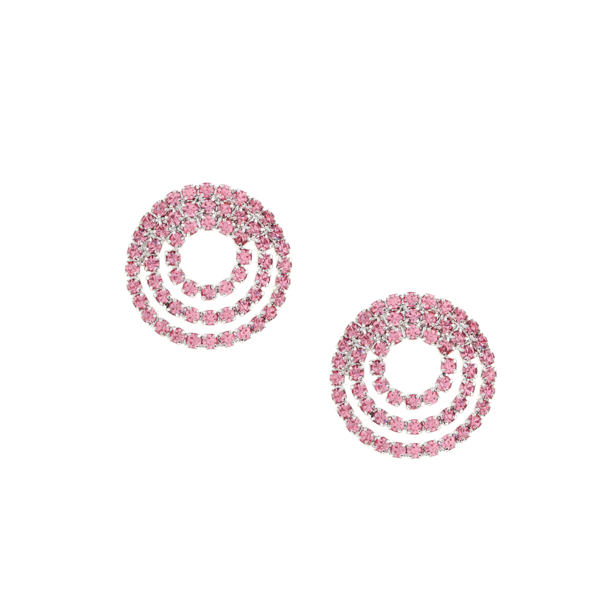Silver Light Rose Rhinestone Multiple Circle Round Shape Dangle Earrings