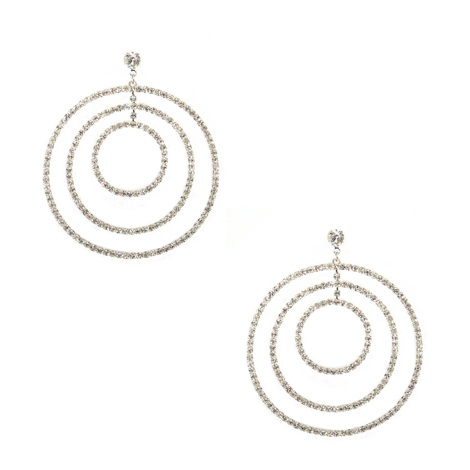 Silver Crystal Rhinestone Large Circle Round Shape Dangle Earrings