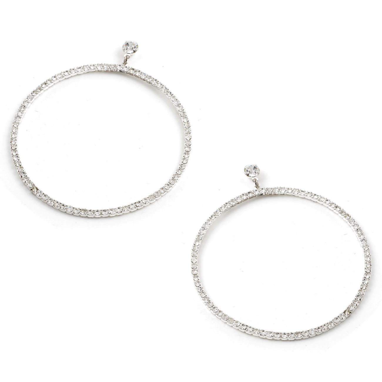 Silver Crystal Rhinestone Large Circle Round Shape Dangle Earrings