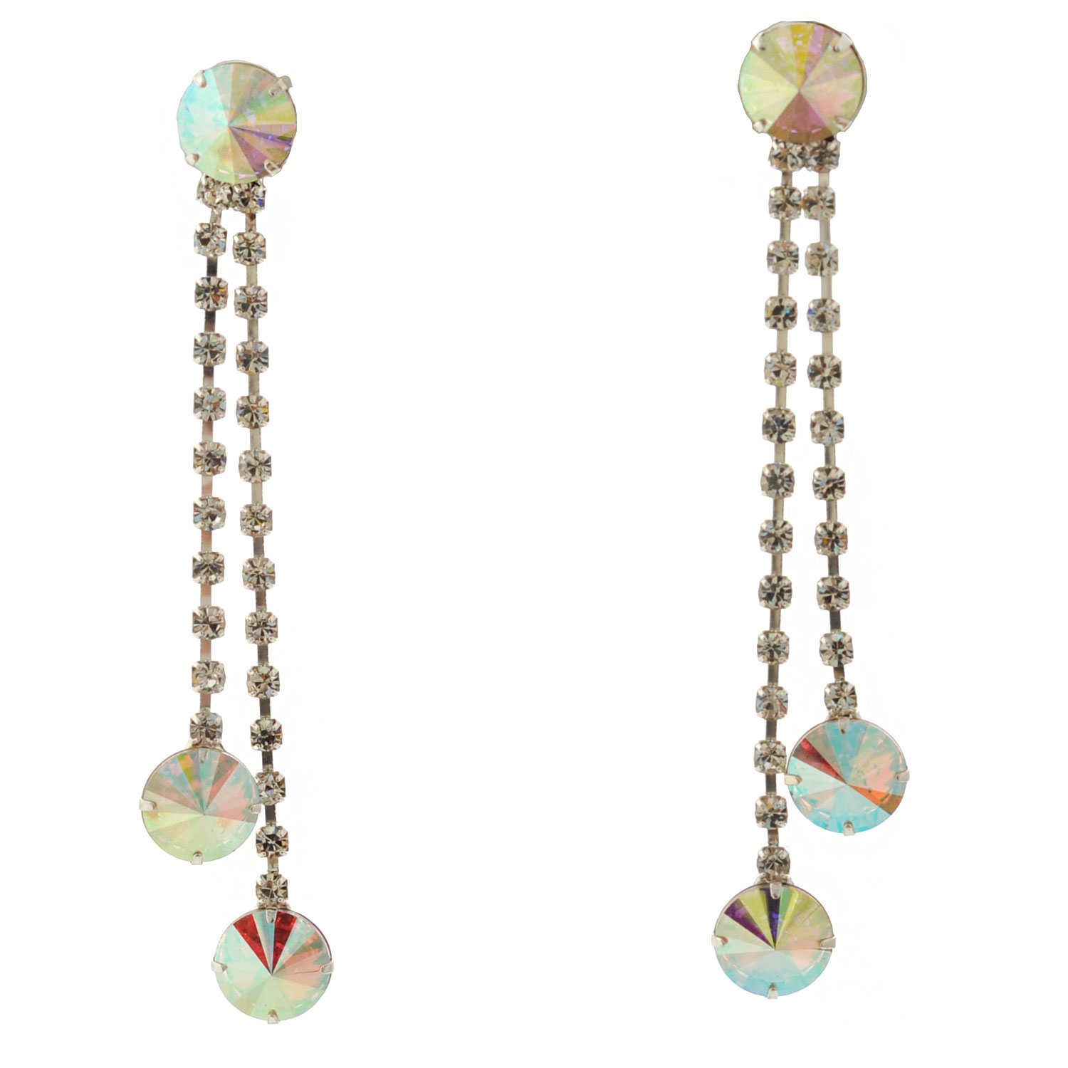 Womens Tear Drop Aurora Borealis 2 Line Dangle Earrings
