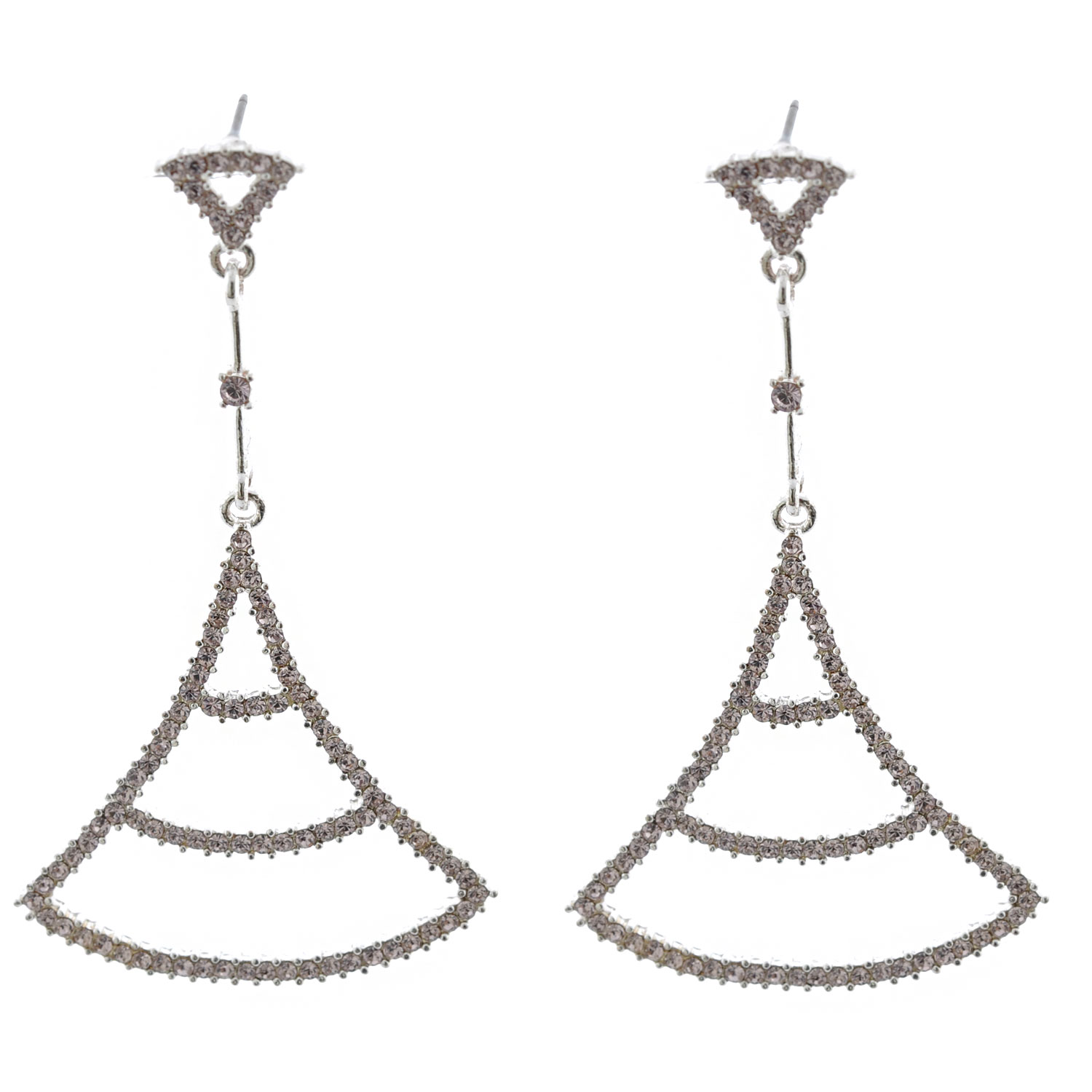 Silver Plating Light Amethyst Rhinestone Triangle Dangle Earrings