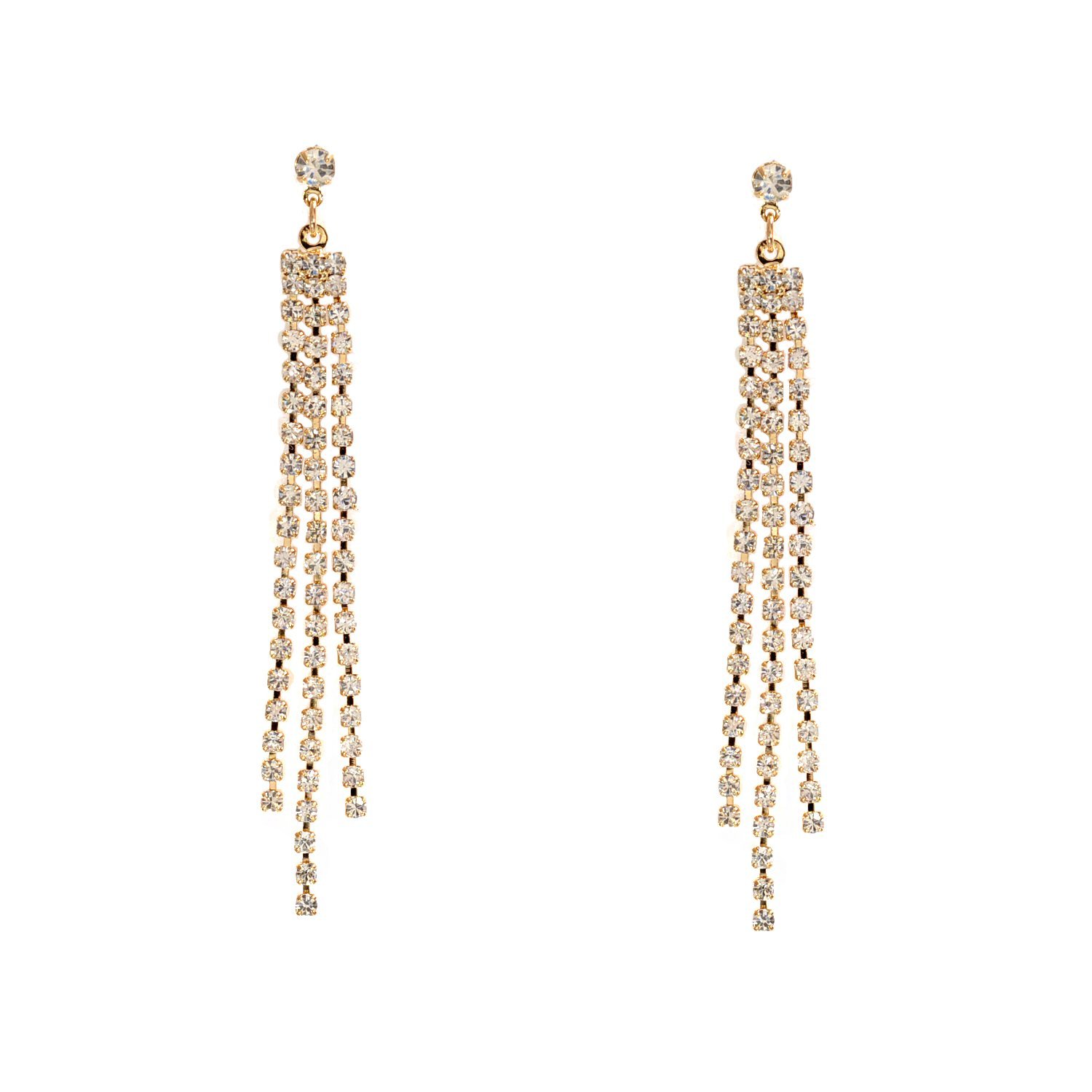 Gold Crystal Rhinestone 3 Strands Drop Dangle Earrings