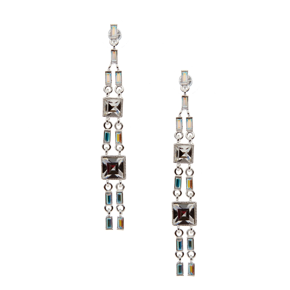 Silver Aurora Borealis Rhinestone 2 Strands Drop Earrings