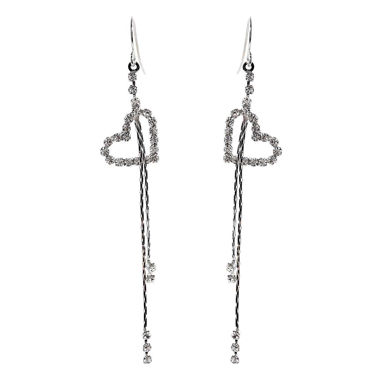 Silver Crystal Hallow Heart Shape Rhinestone with 2 Lines Mini Rhinestones Hook Dangle Earrings