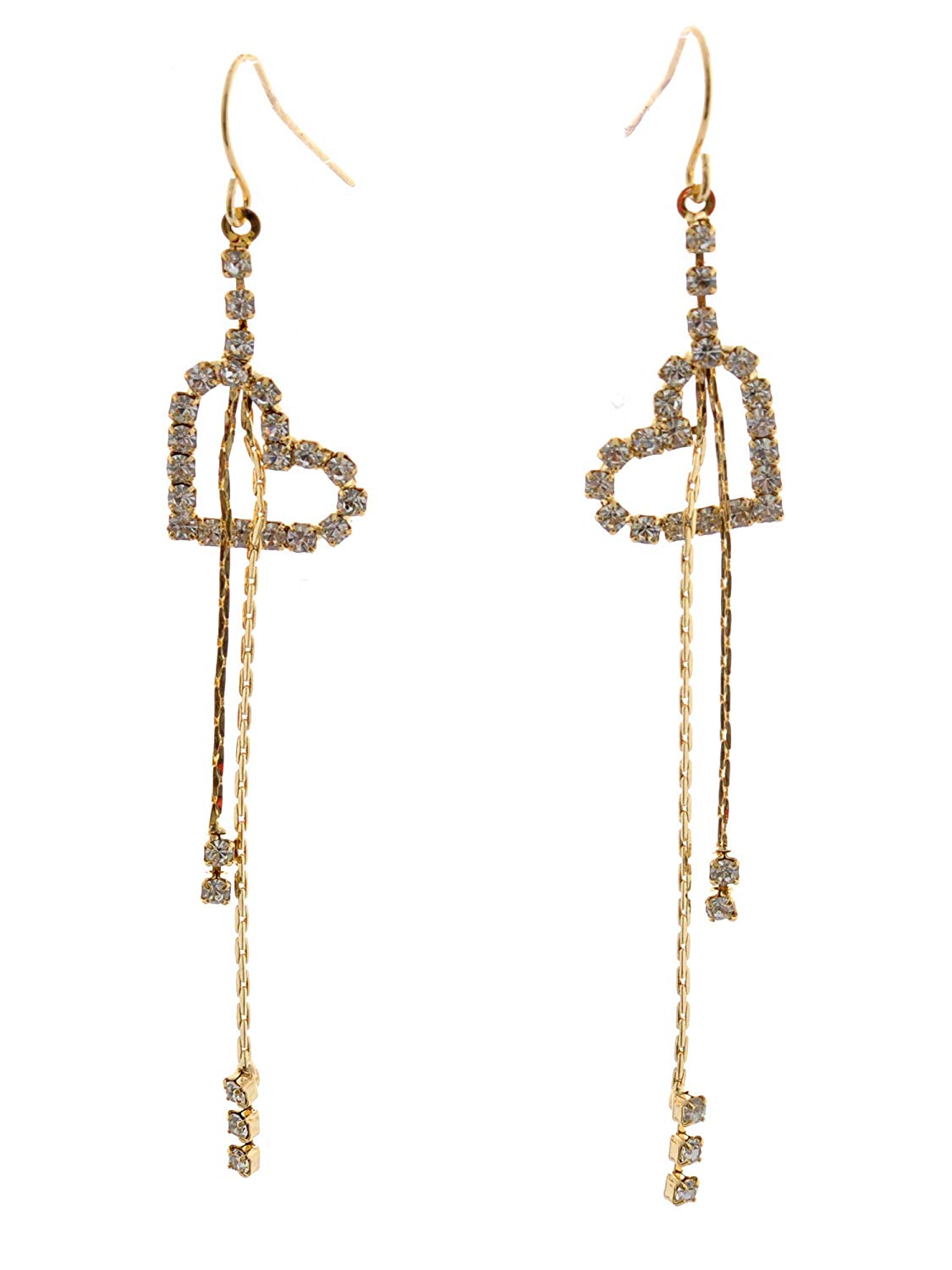 Gold Plating Crystal Heart Shape Fish Hook Dangle Earrings