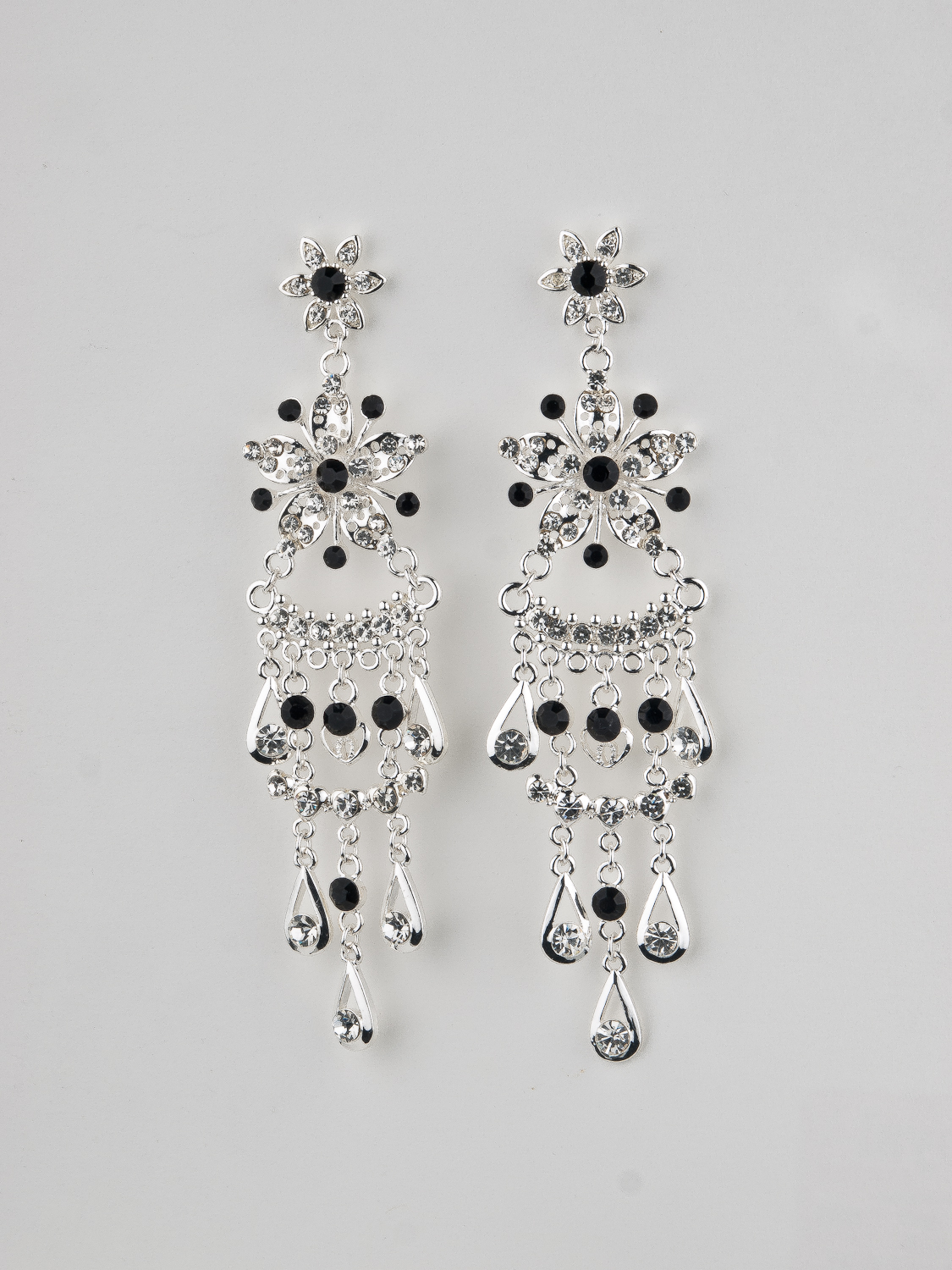 Bridal Earrings Silver Jet Filigree Teardrop Chandelier Earrings