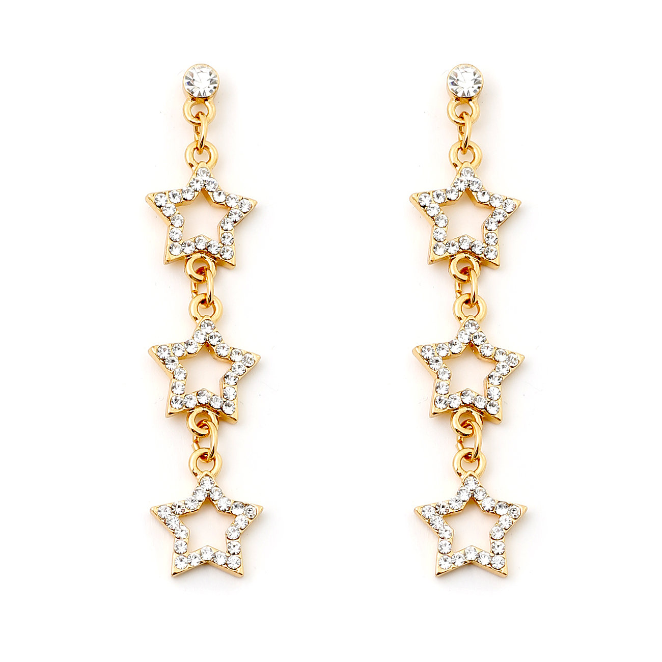 Gold Crystal Rhinestone in Three Star Shape Dangle Earrings
